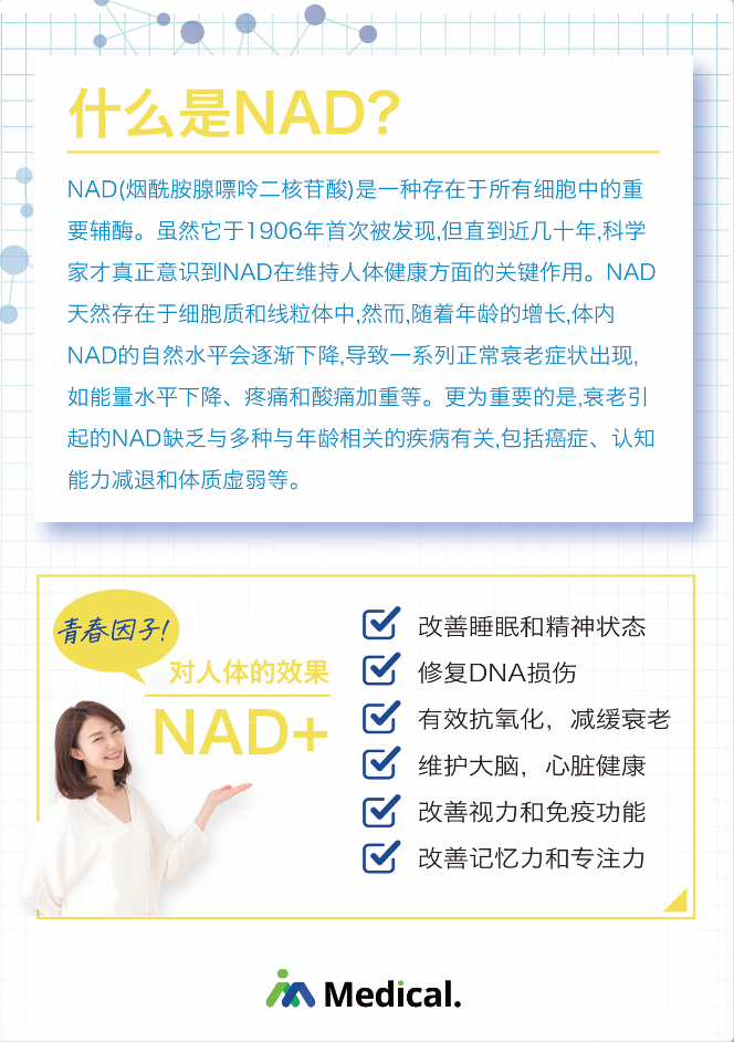 NAD+是长寿科学领域的关注焦点,相比于口服的前体物质 (如 NR、NMN),直接注射 NAD+ 的临床研究显示它对改善 酒精依赖、缓解帕金森氏症状、提升认知力效果显著。
